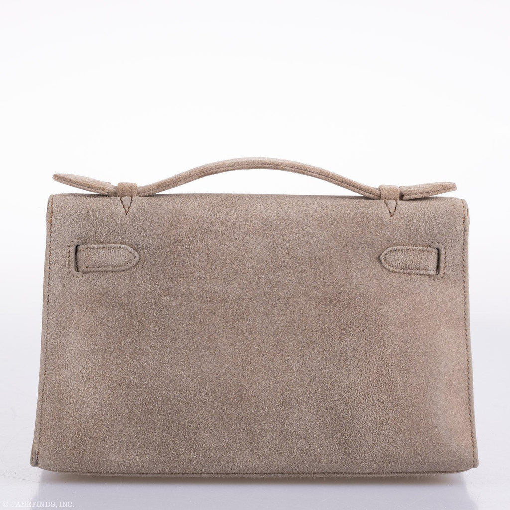- Hermes JPG Kelly Pochette Gris Pale Veau Doblis Suede Gold Hardware