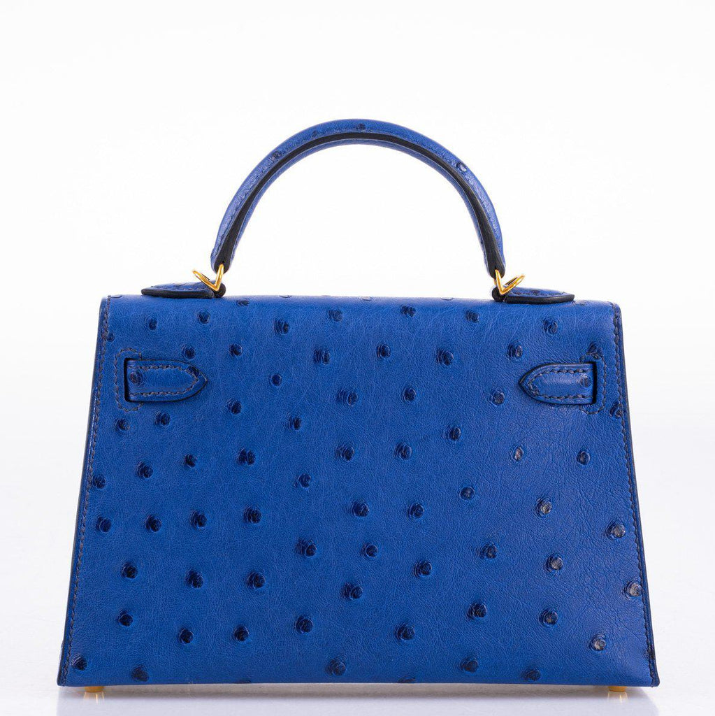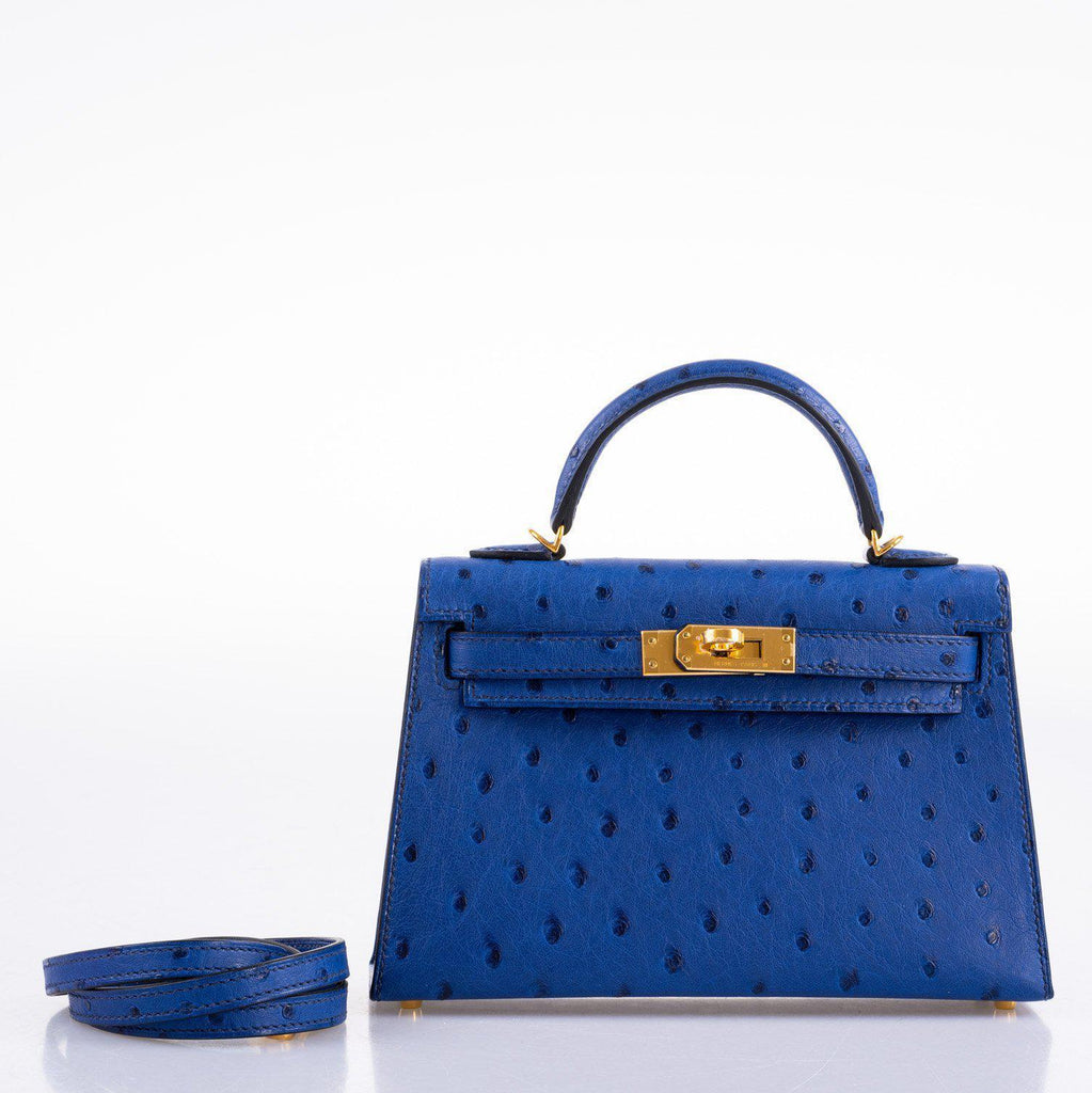 - Hermes Kelly 20 Mini II Sellier Blue Sapphire Ostrich Gold Hardware - 2018, C