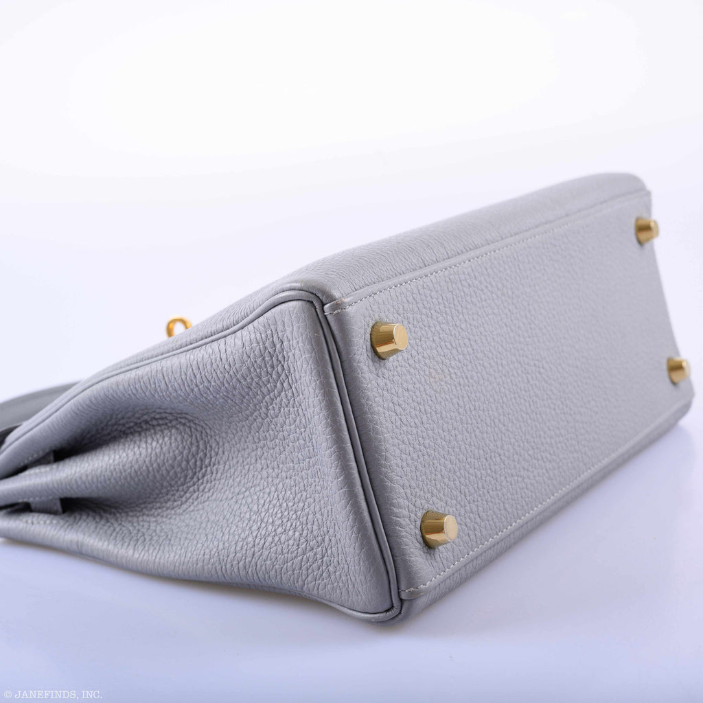While Hermes is known for their incredible colors, their selection of blues alone spans over forty shades. Some hues such as Blue Jean and Blue Marine are produced for decades, while other shades are more elusive, only popping up for one season before seemingly disappearing entirely. Blue Glacier is one such color. The first delicate light blue shade Hermes has produced since Blue Arctic in the early 2000’s, Blue Glacier gives off a cool sophistication, flashing gray and silver under a delicate blue gossamer that holds all the tonalities of this shade together. In Togo leather and topped with Gold Hardware like a glint of the sun above, this 25cm piece of arctic ice has been kept in exceptional condition.