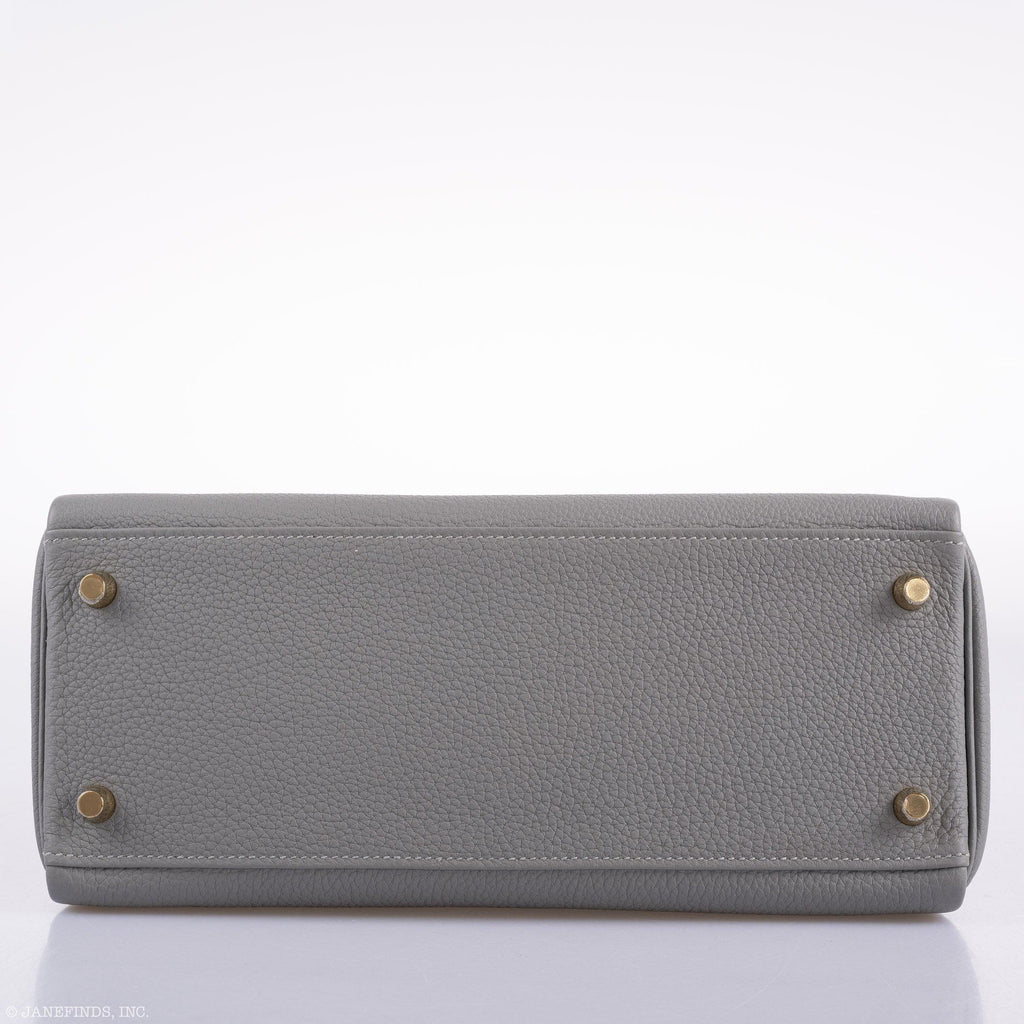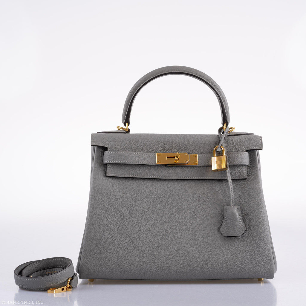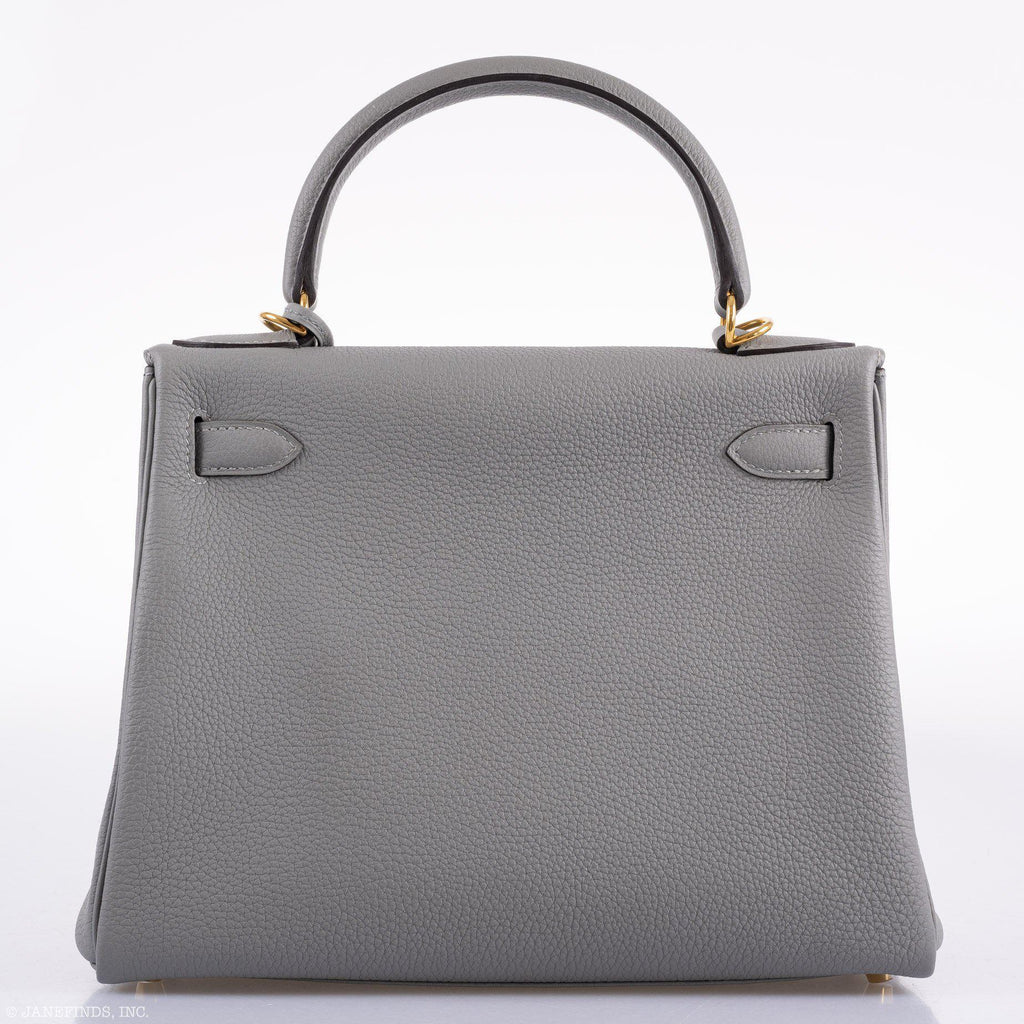 The opportunity to Special Order a bag from Hermes is only offered to the next level of VIP clients, a rare treat for those who have already managed to purchase a number of Birkin's and Kelly's from the House. These bags, which since 2006 have had the iconic horseshoe stamp, or HSS as many call it, are unique as they can be ordered with multiple colors otherwise not produced together. This 28cm example is one such HSS Kelly bag, done in Gris Mouette Togo with a black Interior. Kept in Store Fresh condition by a seasoned collector.