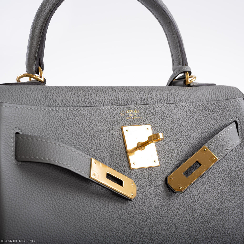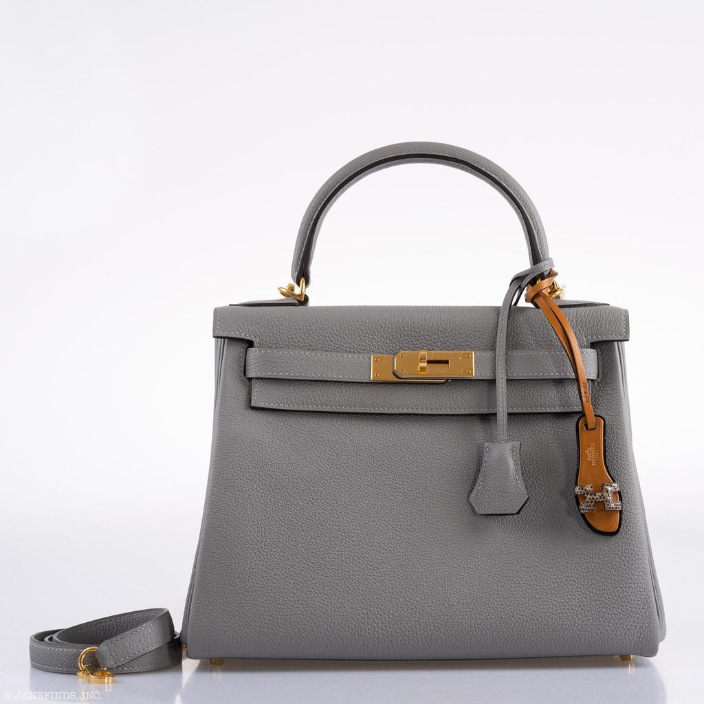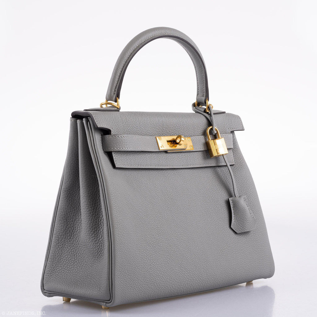 The opportunity to Special Order a bag from Hermes is only offered to the next level of VIP clients, a rare treat for those who have already managed to purchase a number of Birkin's and Kelly's from the House. These bags, which since 2006 have had the iconic horseshoe stamp, or HSS as many call it, are unique as they can be ordered with multiple colors otherwise not produced together. This 28cm example is one such HSS Kelly bag, done in Gris Mouette Togo with a black Interior. Kept in Store Fresh condition by a seasoned collector.