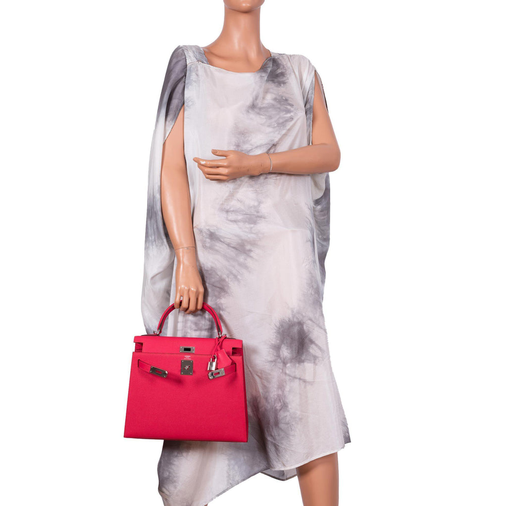 Understated luxury, this Kelly bag makes the perfect case for the quality and timeless aestheticism of Hermes handbags. Done in a lush color combination of Rose Extreme Epsom Leather, a durable and highly scratch resistant material, with Palladium Hardware. This...