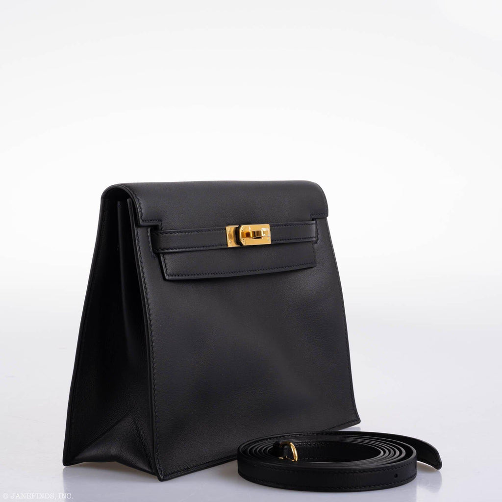 The Kelly Danse was first designed by Jean-Paul Gaultier as a reinterpretation of the iconic Kelly bag that could be transformed into seven different bags. Hermes loves this idea of transformation, and multi-functionality; there is never a buckle or strap on their bags that doesn’t have a purpose. Here Hermes achieves this feat through genius simplicity: The classic body of the Kelly is made soft, and by adjusting the long single strap, it can be worn seven different ways: as a shoulder bag at two different lengths, crossbody, around the waist, as a backpack, a wristlet, or remove the strap entirely and carry it as a clutch. At first Hermes only produced this revolutionary design for a few seasons, quickly turning this unusual version of the Kelly into a rare collector’s piece. Just recently Hermes has re-released the design, and this store-fresh example is black in soft Swift leather with gold hardware. We don’t know how long Hermes will produce these bags for their second run, though the numbers we’ve seen so far have been extremely limited.