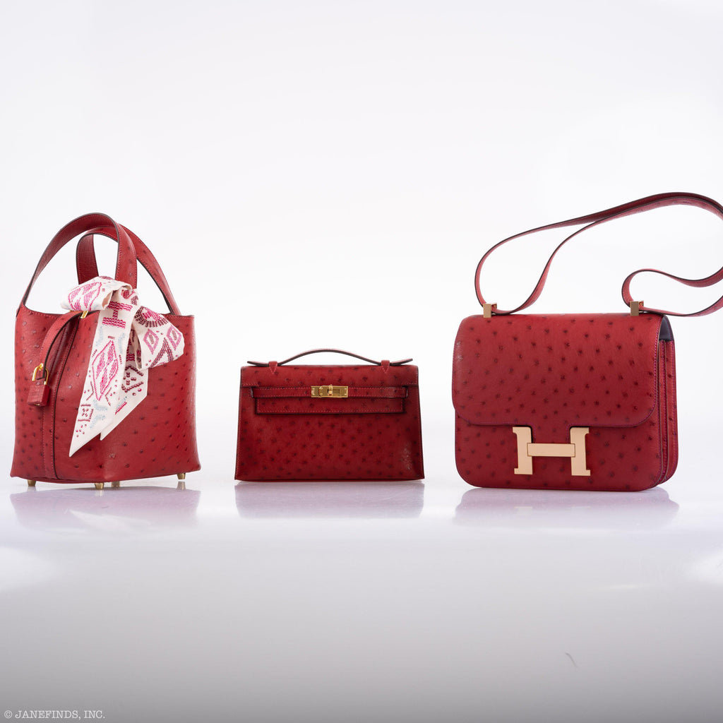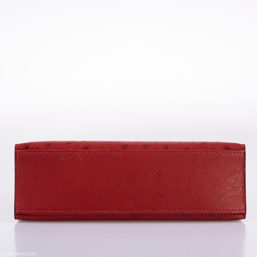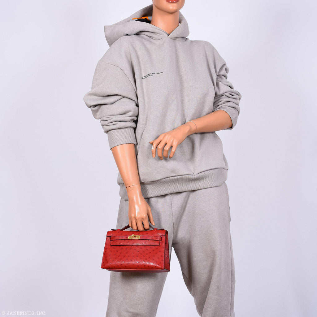 - Hermes Kelly Mini Pochette Rouge Vif Ostrich Gold Hardware - 2017, A