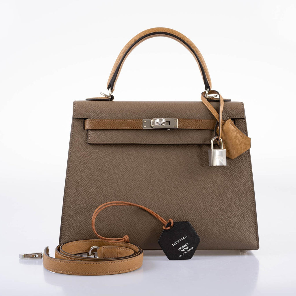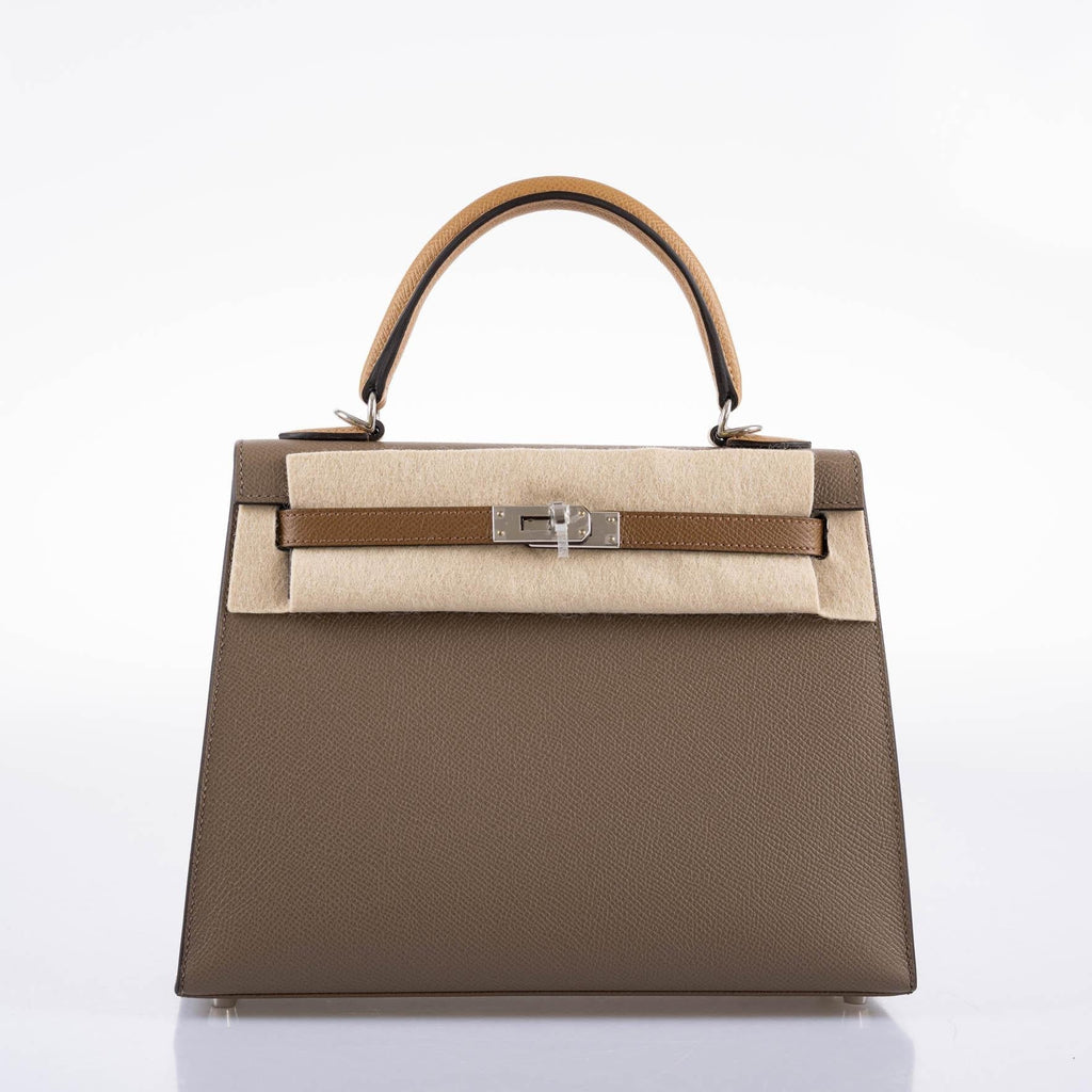 - Hermes Limited Edition Sellier Kelly 25 Etoupe, Alezan & Biscuit Epsom with Palladium Hardware - Z, 2021
