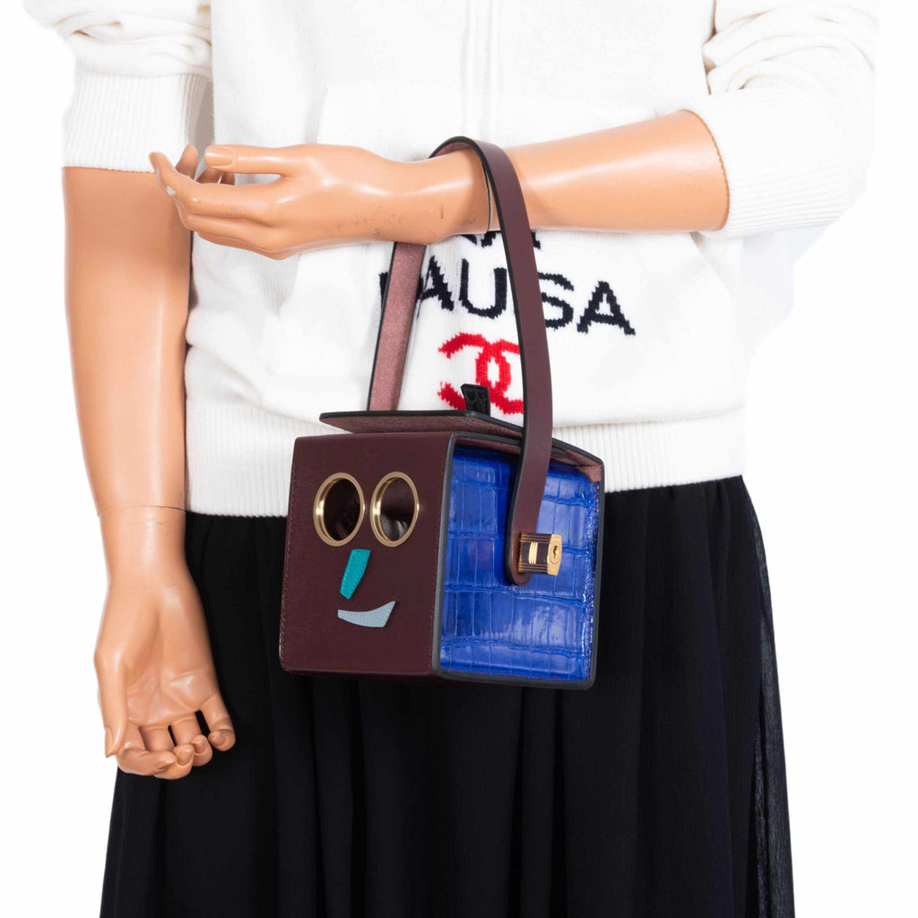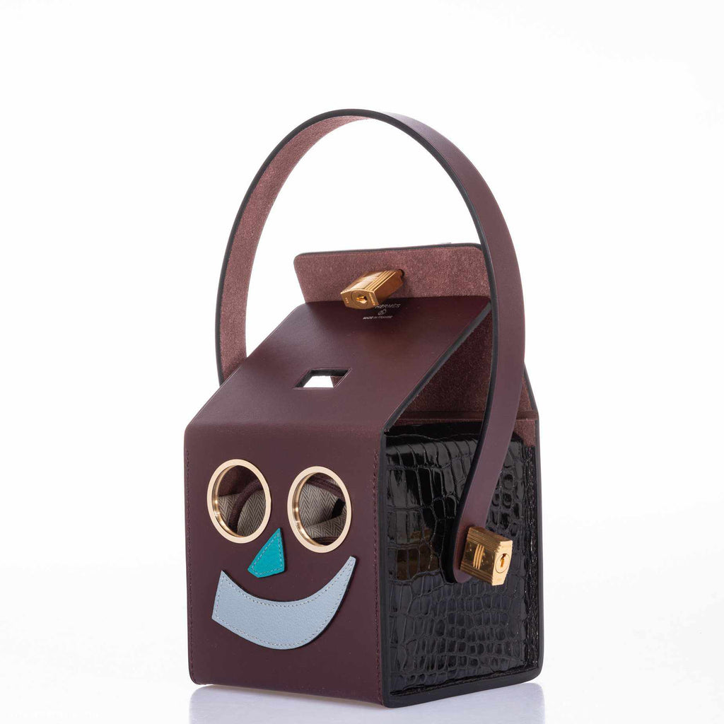 - Hermes Minaudière Robot petit h Bag Blue Electric & Black Porosus Crocodile Golden Brass Hardware * Very Special