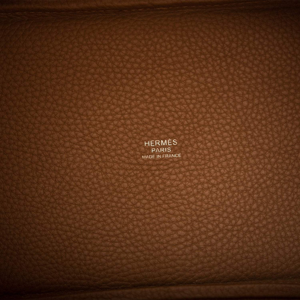 This Picotin Lock is in Alezan clemence leather with palladium hardware and has contrast stitching with two top handles with Biscuit leather on the bottom side.