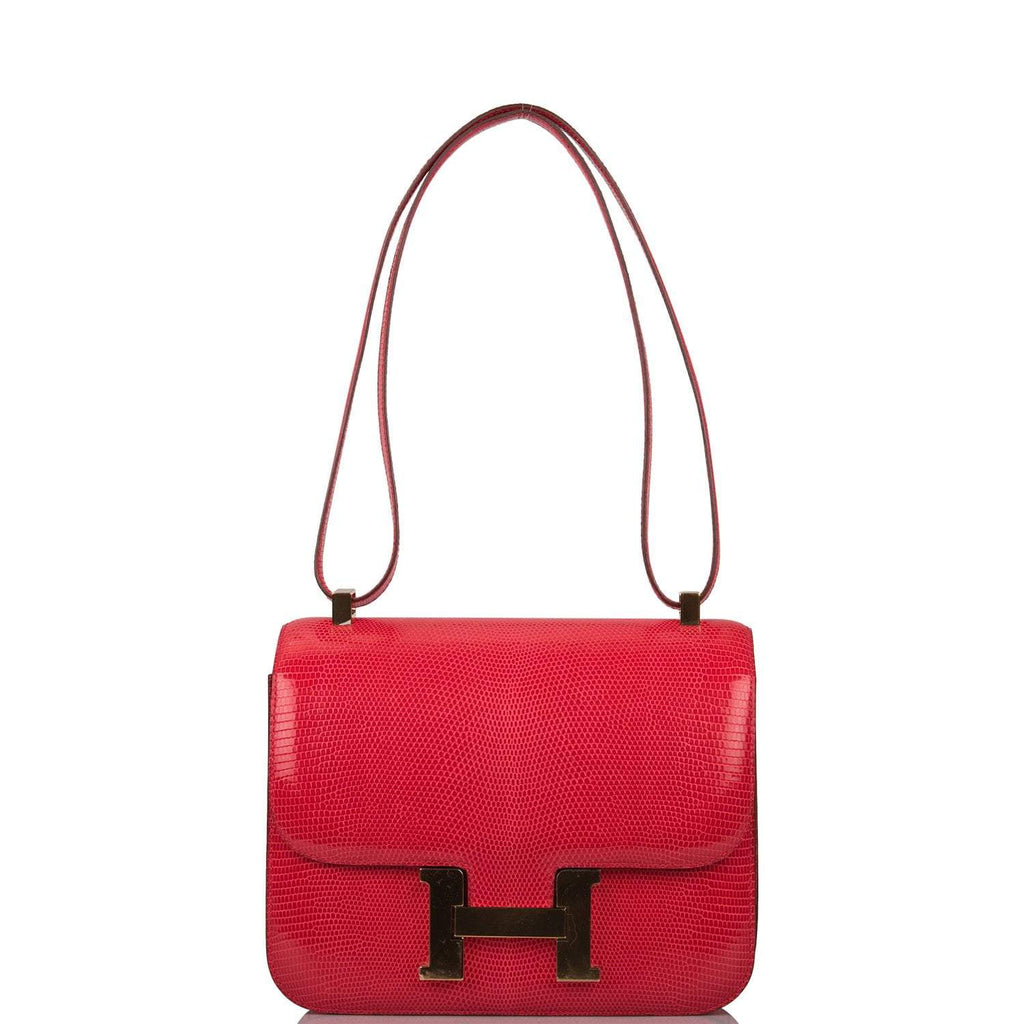 - Hermes Rouge Exotique Lizard Niloticus Constance 24cm Gold Hardware