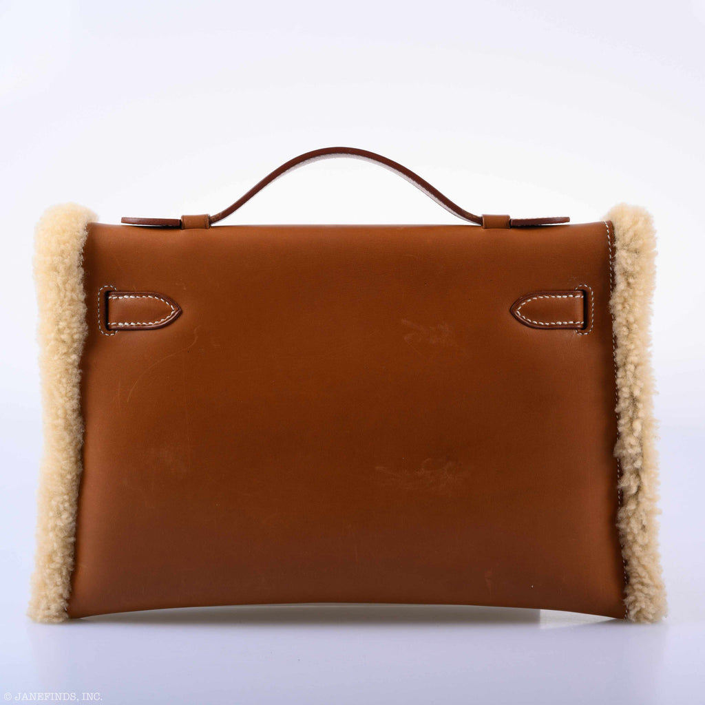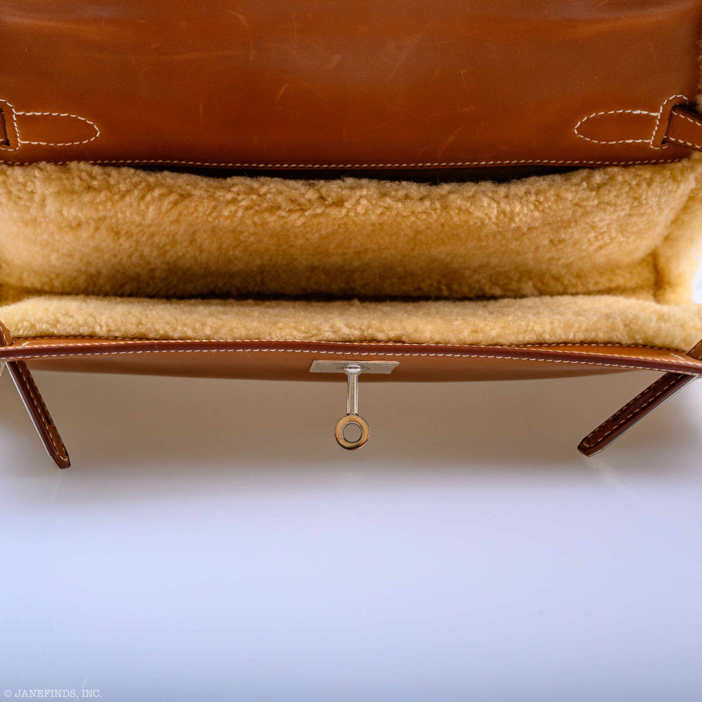 - Hermes Teddy Kelly Clutch Barenia Leather & Mouton Shearling Palladium Hardware - 2007, K Square