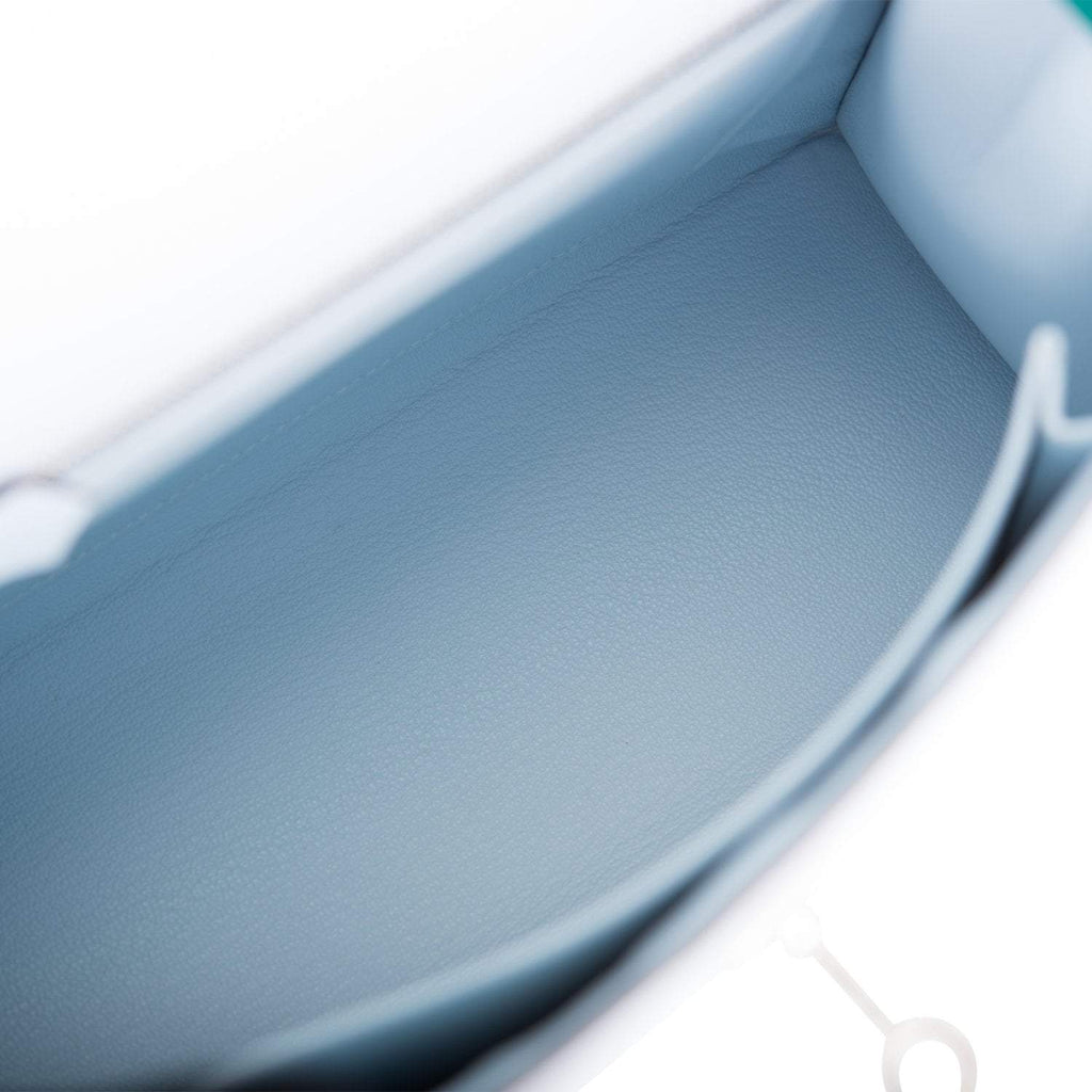 Hermes Tri-Color Bleu Brume, Vert Jade and Gold Epsom Sellier Kelly 25