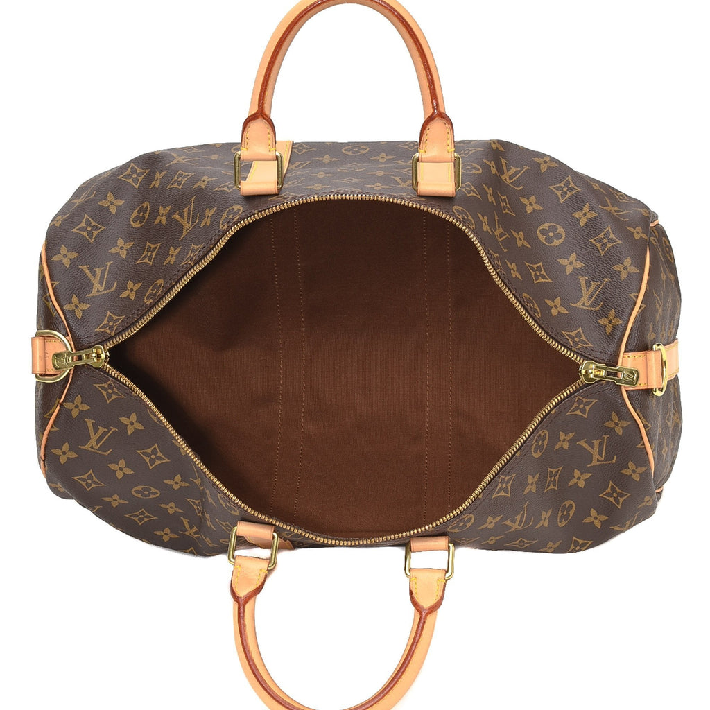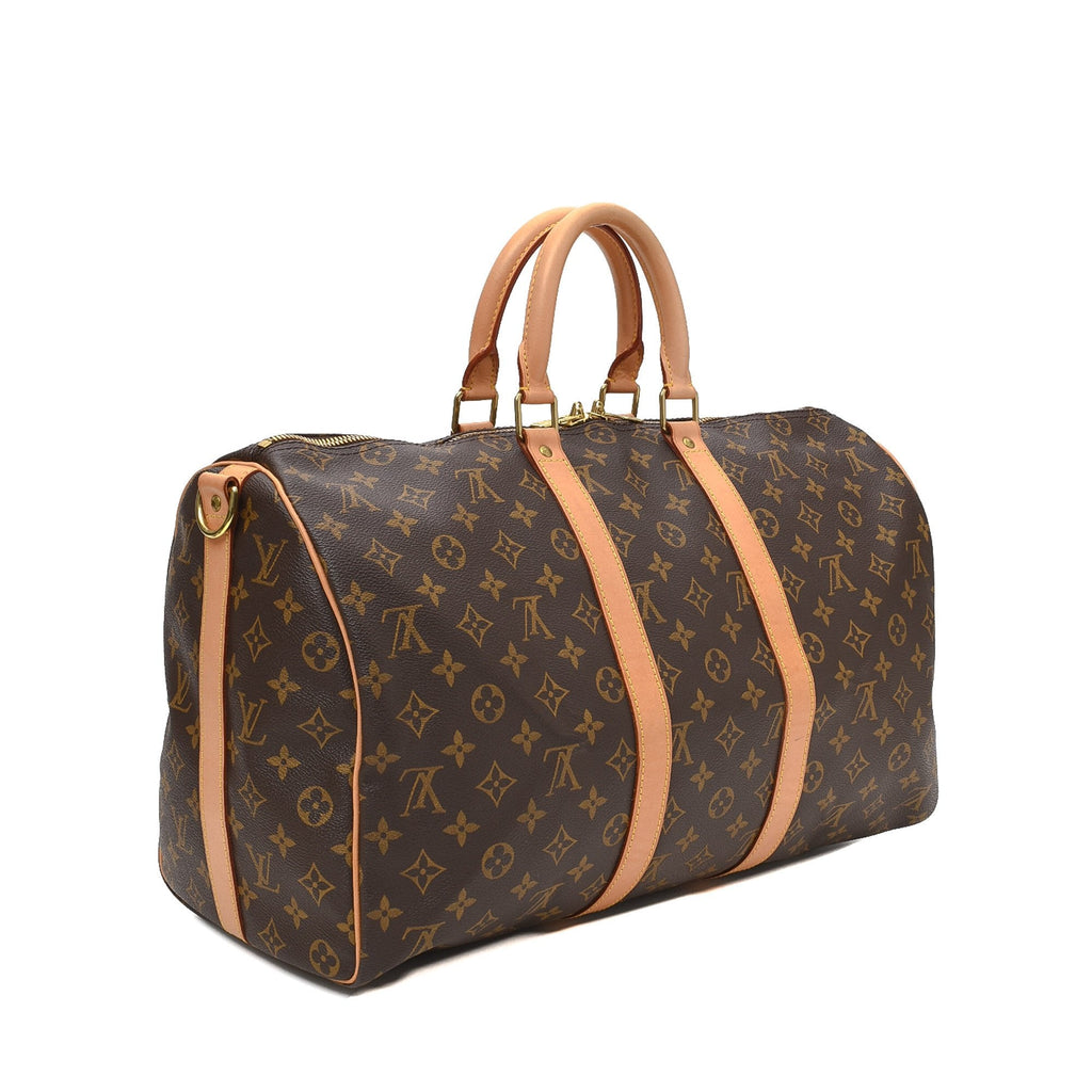 Travel light, but always in style. Since 1930, Vuitton's Keepall duffle has journeyed alongside generations of elegant globetrotters. This version, the smallest of the line, holds all the essentials for an overnight jaunt. In Monogram Canvas, with comfortable-to-hold leather handles, a strap for casual cross-body wear and a gleaming brass padlock.The authenticity of this vintage Louis Vuitton Keepall 45 Bandouliere travel bag is guaranteed by capnwrap . Crafted in damier cobalt coated canvas, this iconic weekender comes in navy.