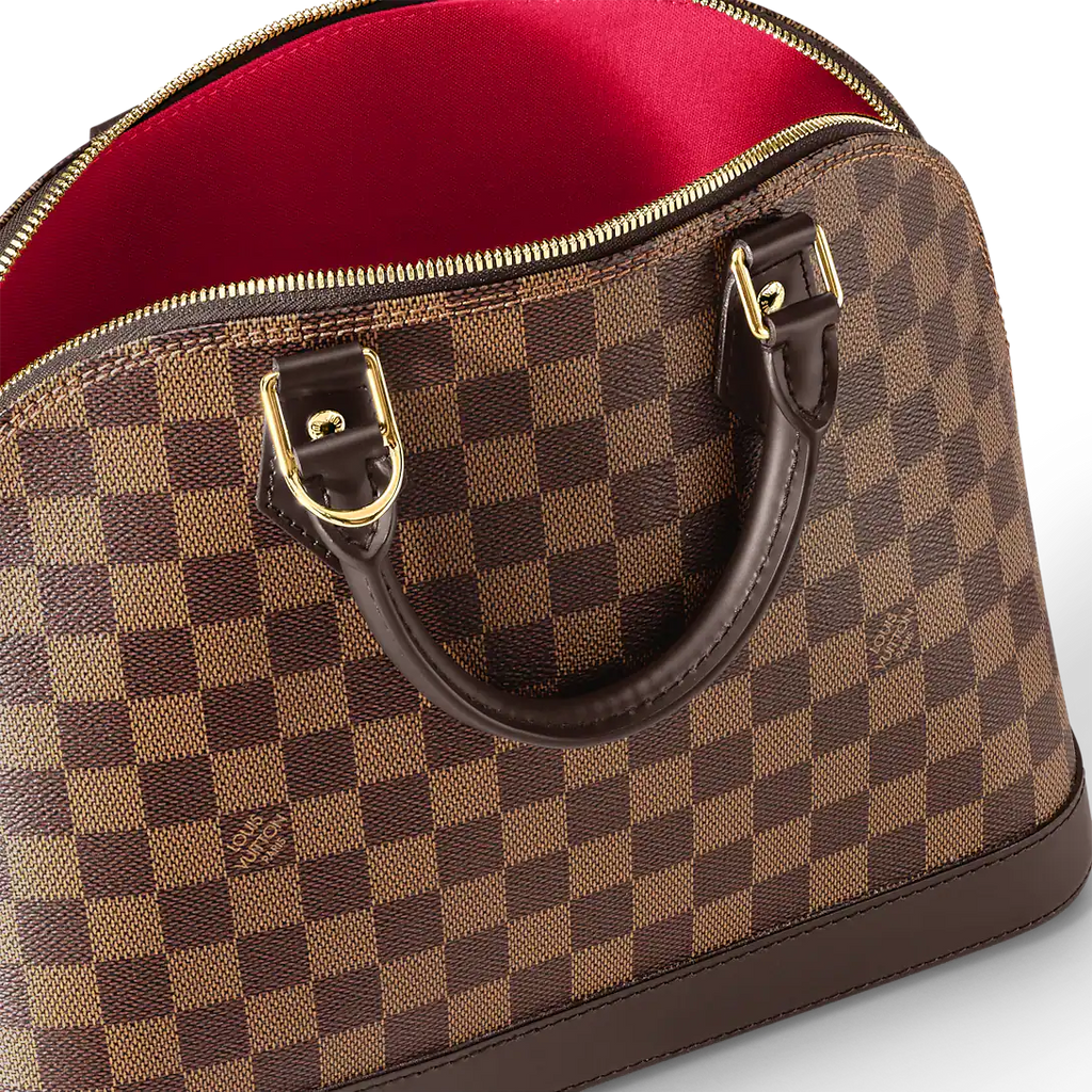 A timeless House icon, the Alma PM handbag is perfect for every day. Its structured lines recall the Art Deco original, designed in 1934 and named for the Alma Bridge in Paris. Crafted from signature Damier Ebene canvas, with hand-stitched Toron handles, natural cowhide trim and gleaming golden hardware, this elegant model can be carried by hand or on the elbow.