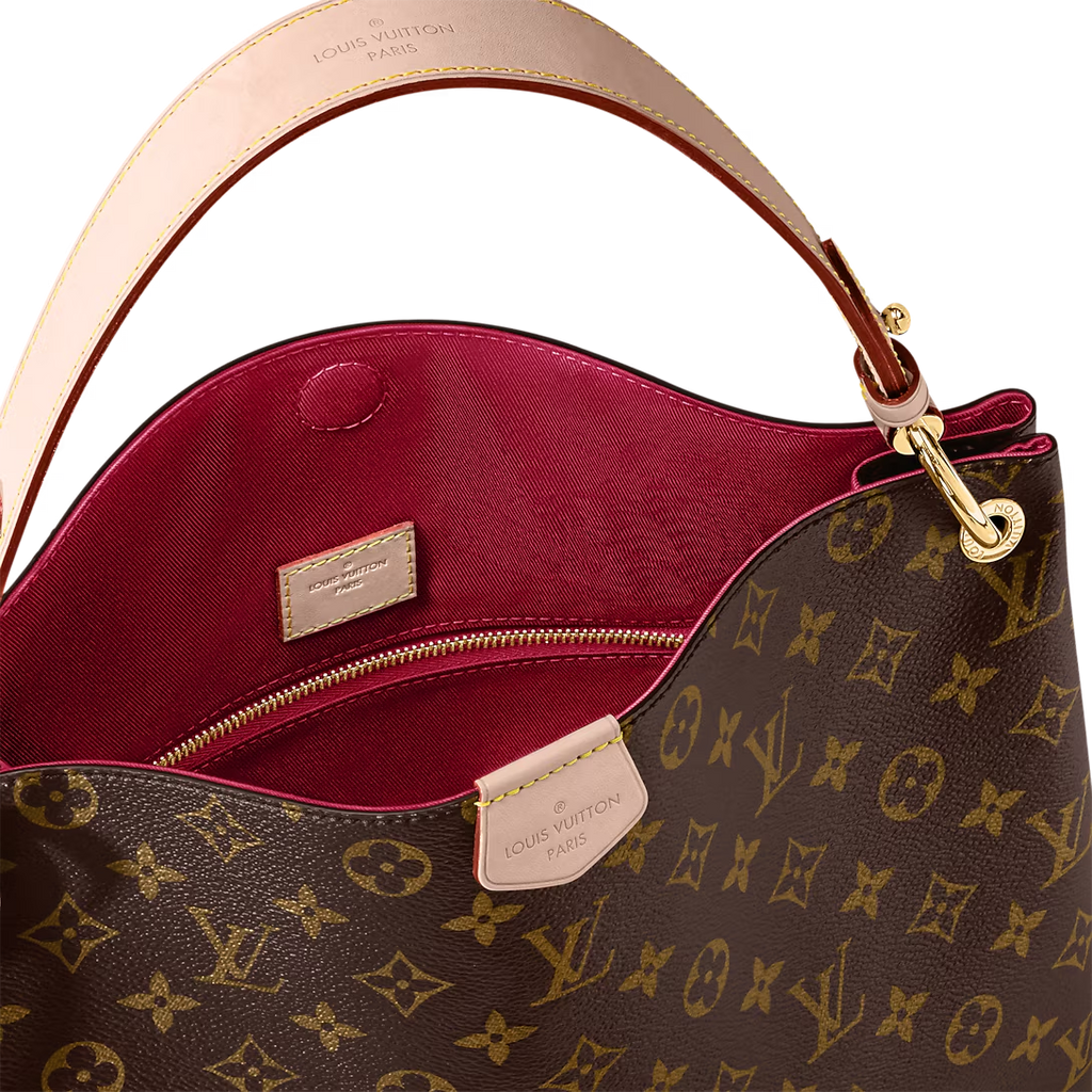The Graceful PM hobo in classic Monogram canvas is a lightweight, roomy bag to carry every day. Natural cowhide leather detailing and golden hardware add a refined touch. The body-friendly design combines with a supple, flat handle for stylish and comfortable over-the-shoulder wear. The magnetic closure and zipped inside pocket keep belongings secure.