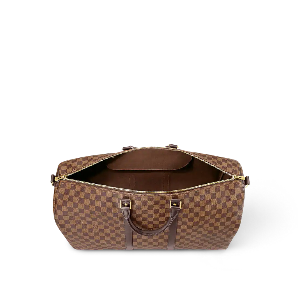 An icon since the appearance in 1930, the Keepall embodies the spirit of modern travel. Light, supple and always ready for immediate departure, the bag lives up to its name: those adept at the art of packing can easily fit a week's wardrobe into the generously sized (and cabin-friendly) Keepall 55. Shown here in classic Damier Canvas, with a strap for casual cross-body wear.