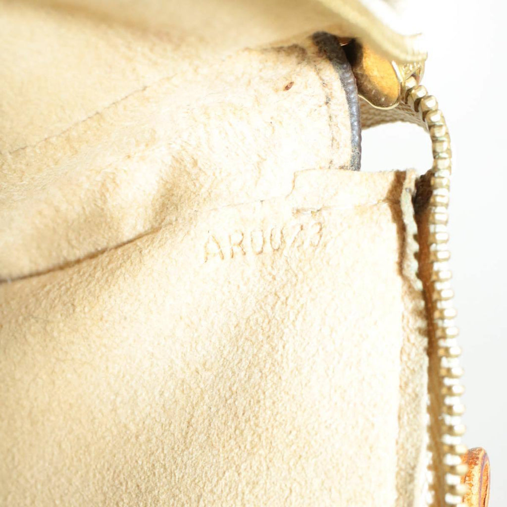 A fabulous collector's piece is this Louis Vuitton Monogram Cherry Blossom Pochette Accessoires Pouch. Featuring artwork created by Japanese artist Murakami for Louis Vuitton under the guise of Marc Jacobs. One could say this one was of the first collaboration that started the trend for 'bag customization'. This pochetter style bag has signs of fair vintage use, with vachette leather has signs of patina and watermarks, some of the pain has peeled slightly, the gold brass tone hardware has a bit of tarnish. Overall the bag is still in good usable condition and comes with adjustable cross body strap. Circa 2003