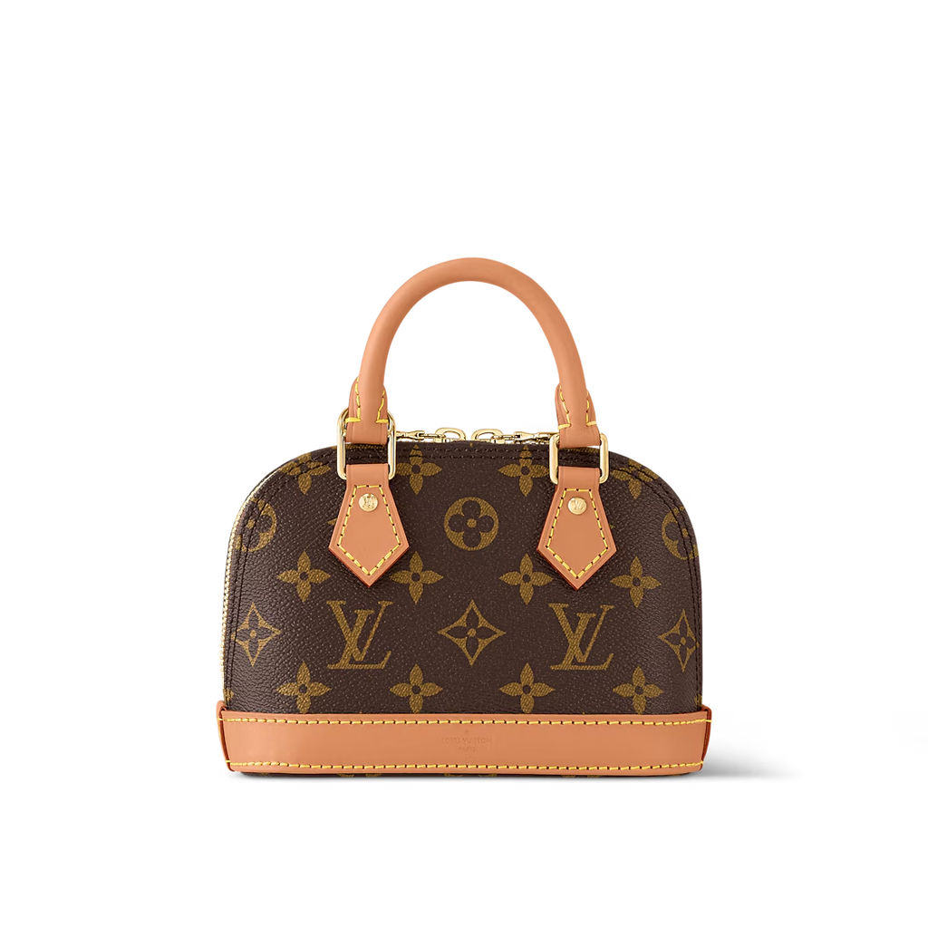 A miniature replica of the iconic Alma bag, the Nano Alma pairs Louis Vuitton's signature Monogram canvas with natural leather trim. This exquisitely crafted piece combines heritage appeal with modern functionality: the double-zip closure reveals a surprisingly spacious interior, while the two leather handles and adjustable, removable shoulder strap offer multiple carry options.