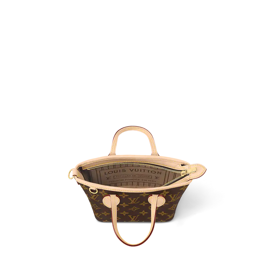 This season the House’s forever favorite, the Neverfull, gets reinvented as a mini-tote: the Neverfull BB handbag. This scaled-down version features an adjustable and detachable textile strap as well as a playful coin purse attached to a D-ring. It is just the right size for small essentials like a smartphone and compact wallet.