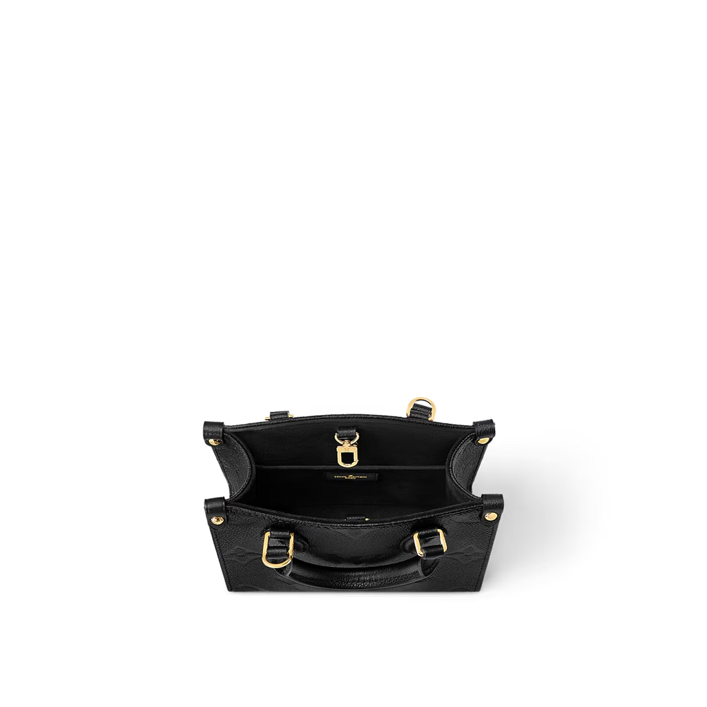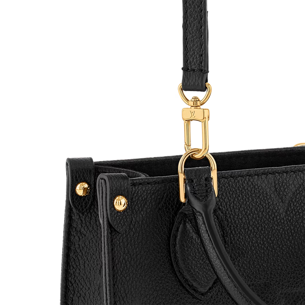 The OnTheGo BB is an on-trend micro-bag fashioned from Monogram Empreinte leather, with Monogram embossing. This tiny tote boasts all details of the full-size model – including the distinctive handle mounts and riveted leather tabs on the corners – and can fit a smartphone and compact wallet. A removable and adjustable strap enables shoulder carry.