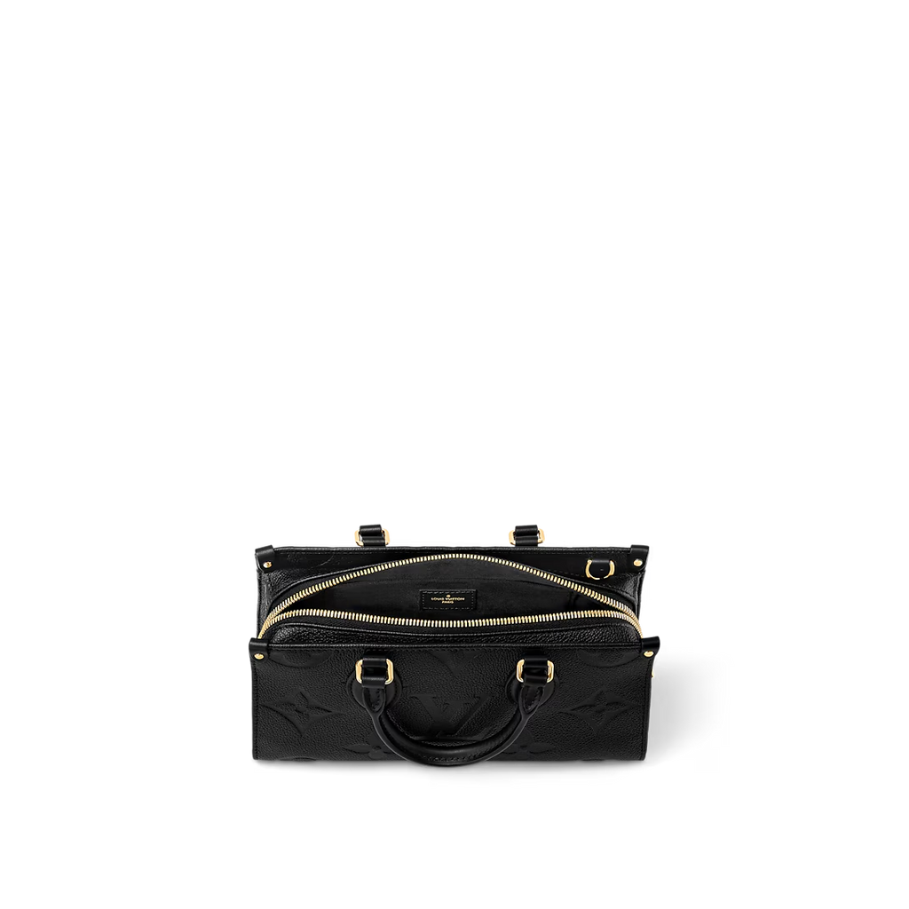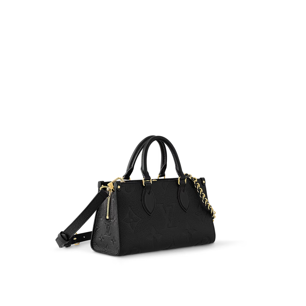 Introducing the OnTheGo East West tote, interpreted in a beautifully proportioned east-west silhouette. Made from Monogram Empreinte leather embossed with a tonal Giant Monogram motif, this compact model boasts a well-organized interior for daily essentials. The bag lends itself to a variety of carry styles, thanks to its two articulated top handles and a removable chain-and-leather strap.