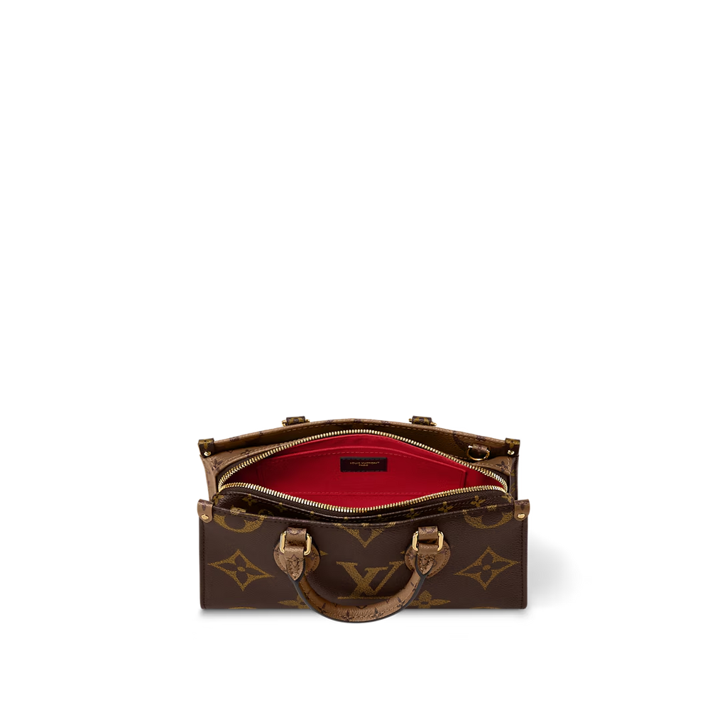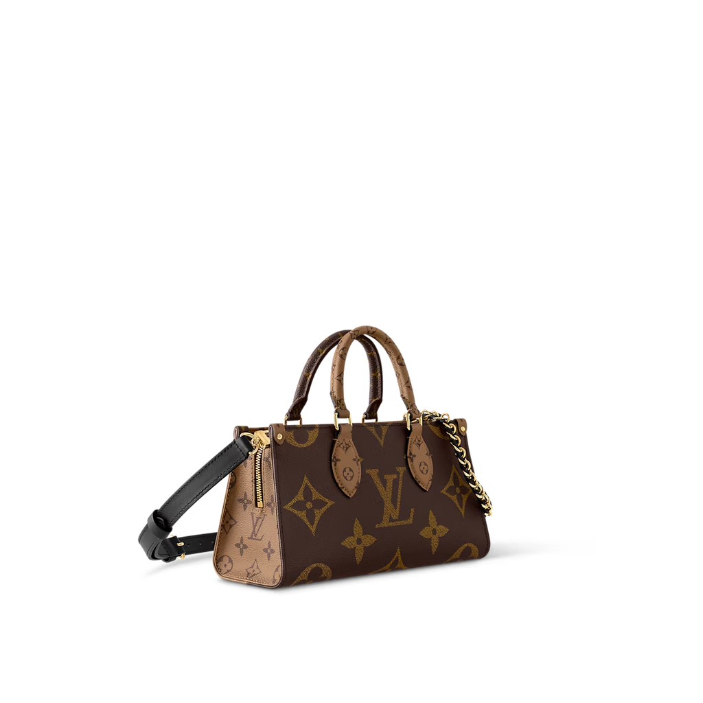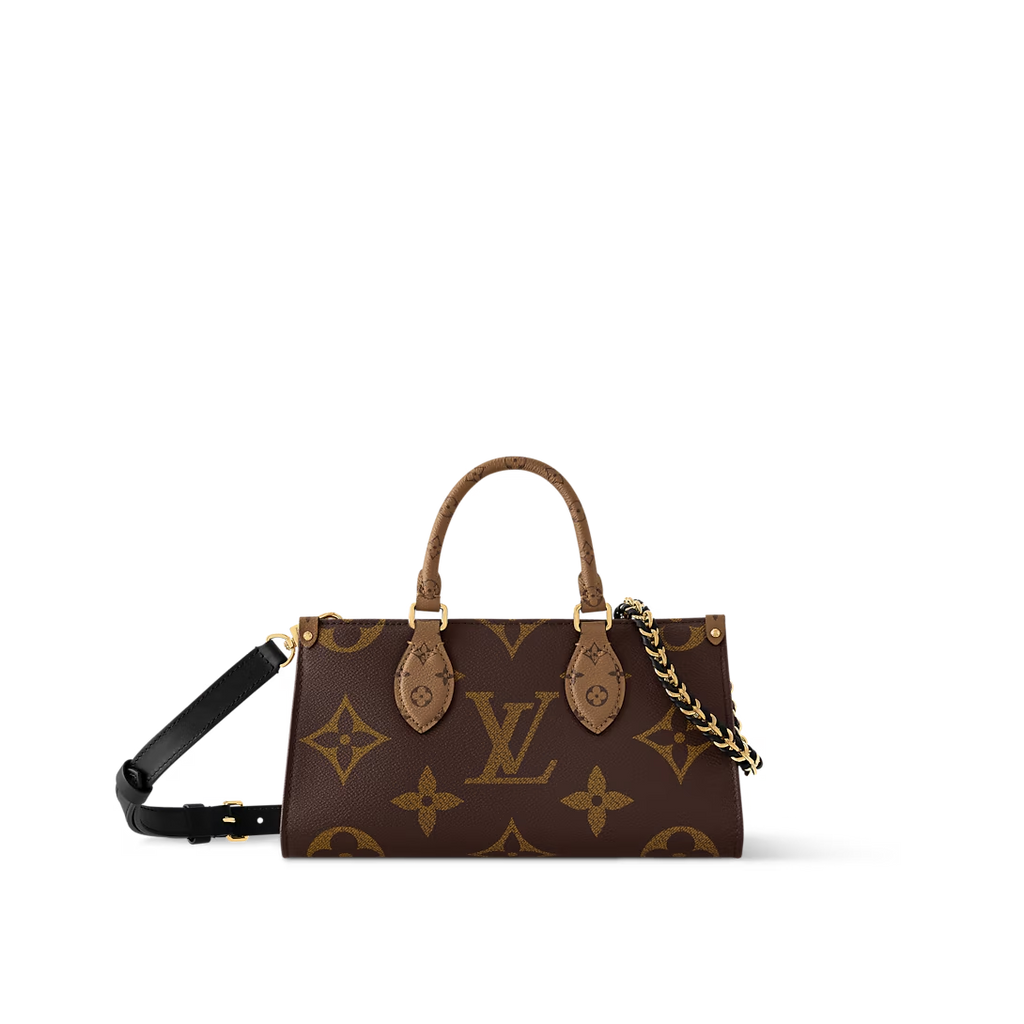 Showcasing the House’s Monogram Giant signature, this OnTheGo East West is a sophisticated everyday choice. Crafted from coated canvas, it is accented with Monogram Reverse coated canvas trims and gold-toned hardware. Fitted with two handles, a removable and adjustable strap, and a removable chain, the versatile design can be worn in a variety of ways and includes multiple compartments and pockets to keep valuables organized.