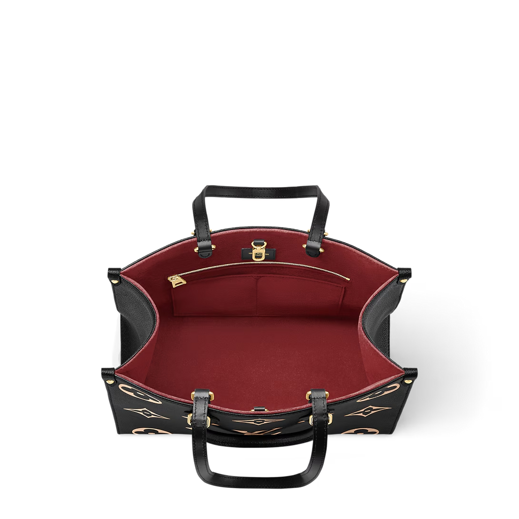 The OnTheGo MM is a medium-sized tote bag with two sets of handles, long and short, for hand and shoulder carry. Fashioned from supple grained cowhide leather, it features a Medium Monogram pattern, printed on and embossed into the leather. The spacious interior, which can hold a laptop and other work essentials, make it a versatile everyday bag.