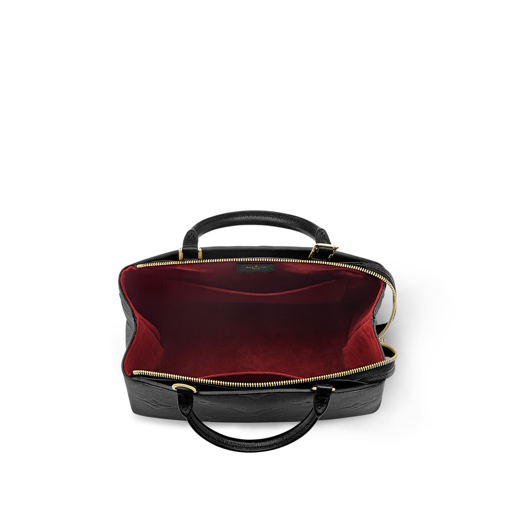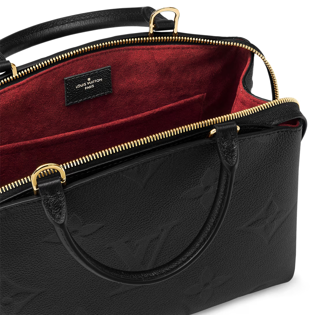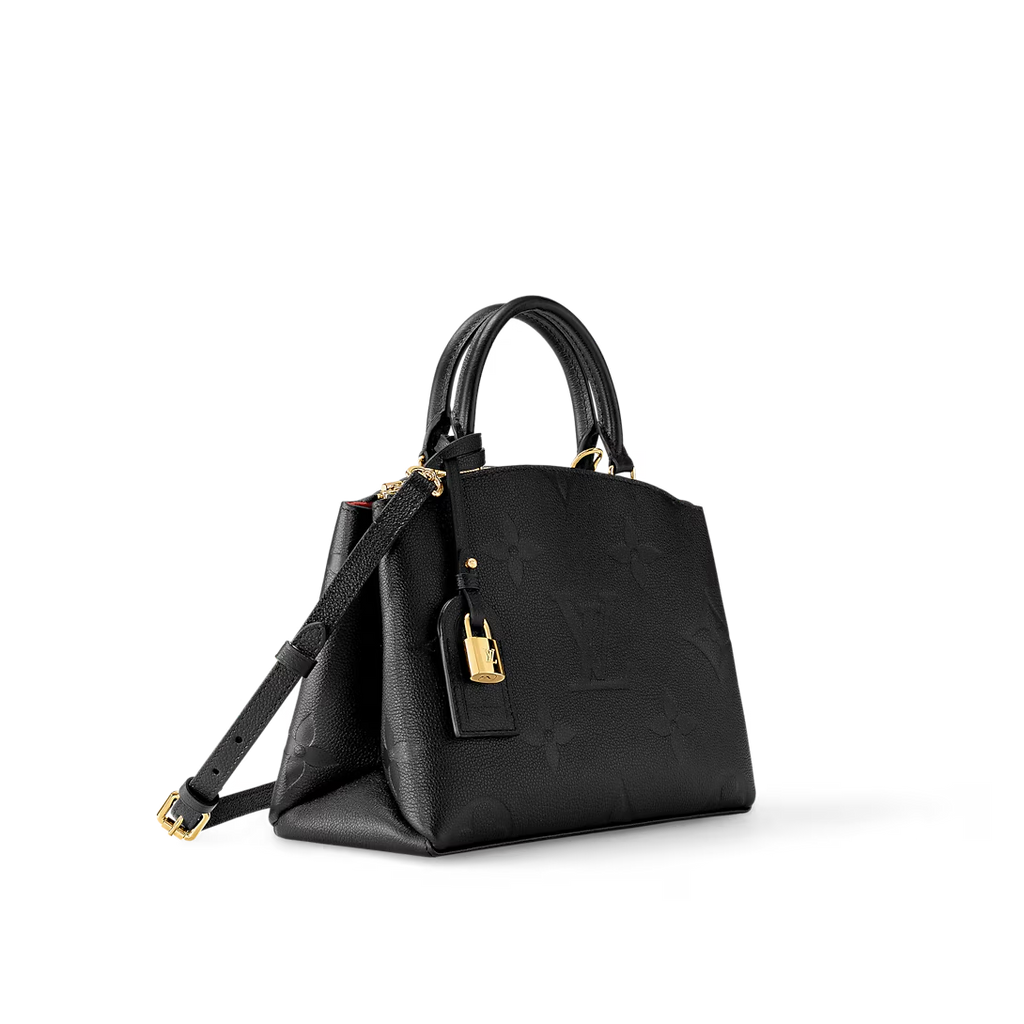The sophisticated Petit Palais is a smaller handbag made from soft, grained leather with an embossed oversized Monogram pattern. The leather name tag and gold-color padlock bring a touch of elegance and evoke the House’s travel roots. There are two top handles for hand carry; the removable and adjustable strap provides comfortable shoulder wear.