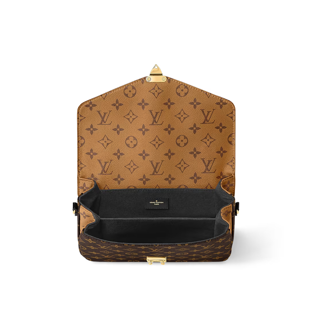 With its distinctive satchel silhouette, the Pochette Métis bag has become an object of fashion desire. This compact, go-everywhere model in trendy Monogram Reverse canvas features a signature S-lock closure with a gleaming gold-tone finish. Versatile and surprisingly roomy, it is fitted with a chic top handle and a long removable strap for shoulder or cross-body wear.