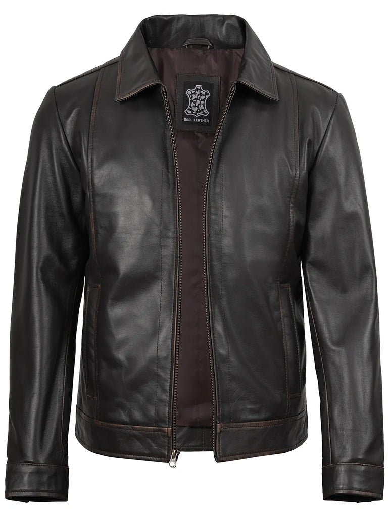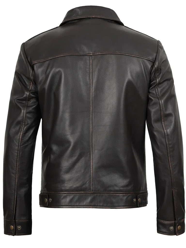 Embrace the essence of the legendary with this distinctive Rub Off Dark Brown Leather Jacket for men. Meticulously crafted, the jacket captures the vintage yet unique persona of the character.