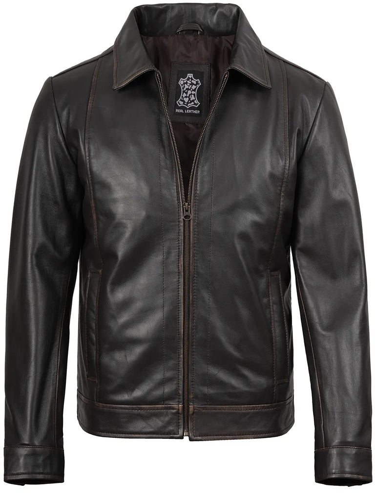 Embrace the essence of the legendary with this distinctive Rub Off Dark Brown Leather Jacket for men. Meticulously crafted, the jacket captures the vintage yet unique persona of the character. Specification: 100% Real Lambskin Leather....