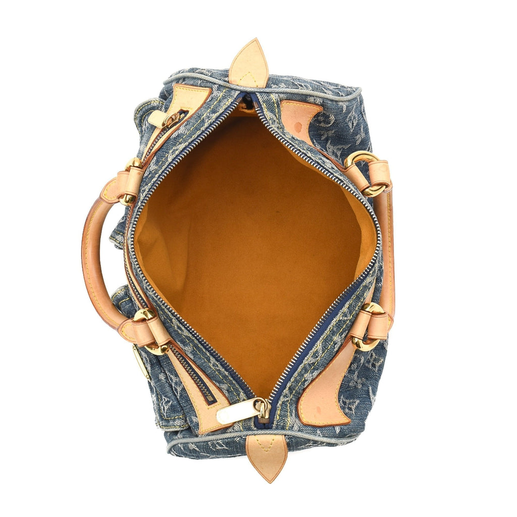capnwrap guarantees this is an authentic vintage Louis Vuitton Neo Speedy handbag. Crafted in monogram denim denim, this refined purse comes in blue.