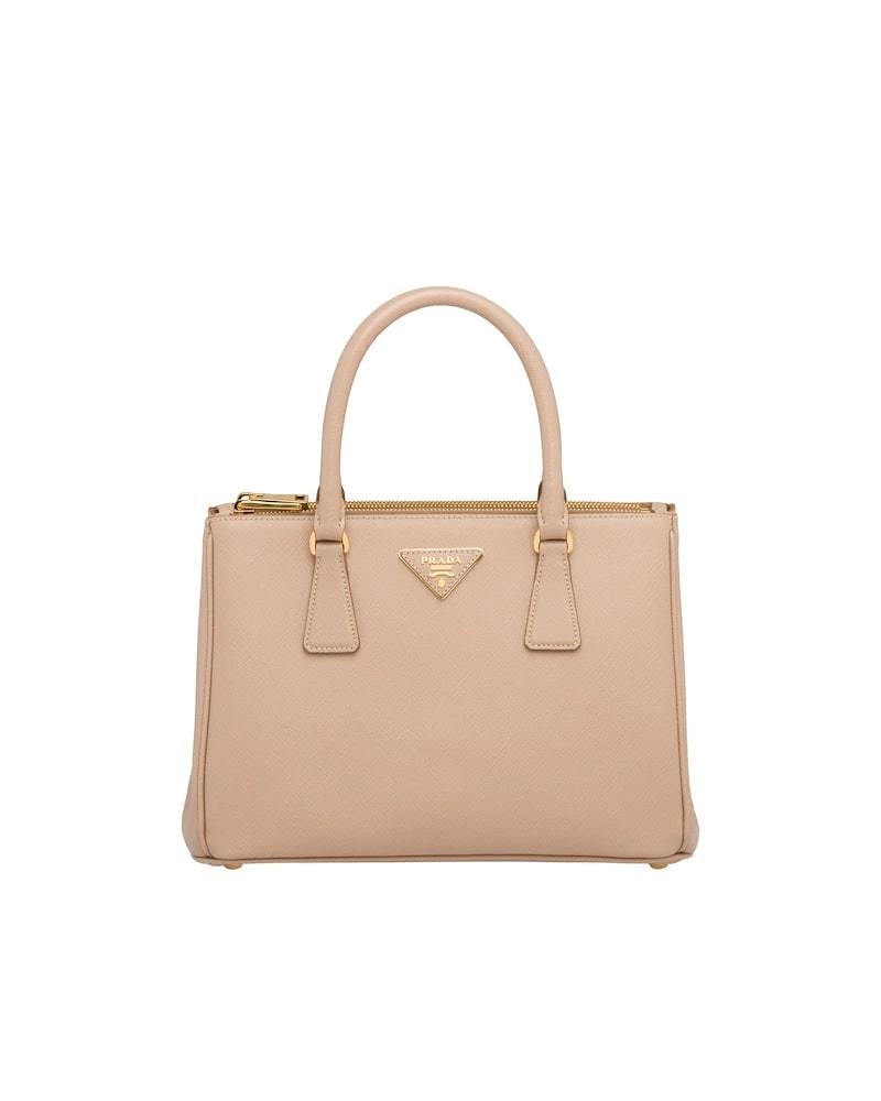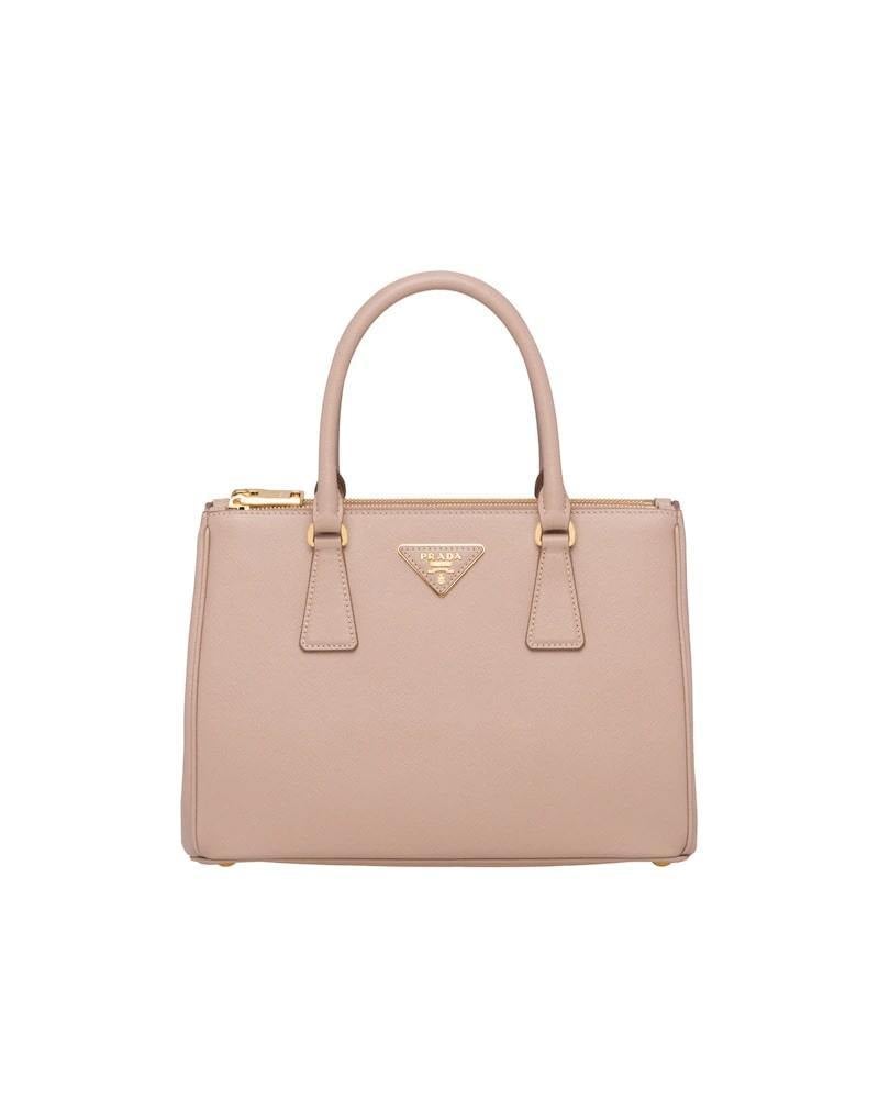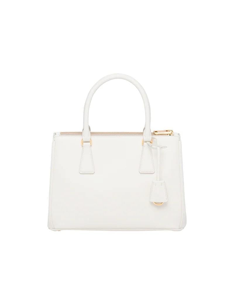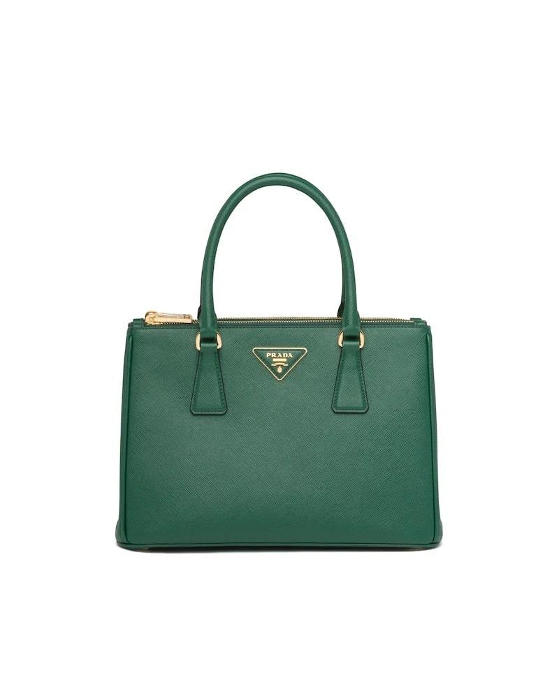 - The Prada Galleria bag, the quintessence of timeless elegance, owes its name to the historic Prada store that Mario Prada opened back in 1913 in Galleria Vittorio Emanuele II in Milan. The accessory made of Saffiano leather has a double handle and detachable shoulder strap that allow it to be worn as a shoulder bag or handbag. The bag stands out for its sophisticated simplicity and is decorated with the leather triangle logo and gold-tone metal hardware.