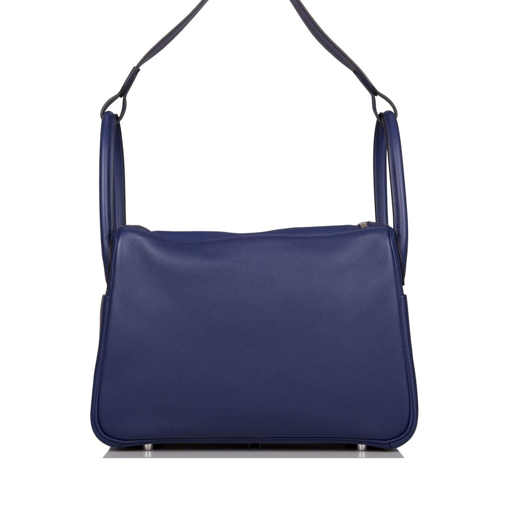 Pre-owned Hermes Lindy 30cm Bleu Encre Verso Swift Palladium Hardware
